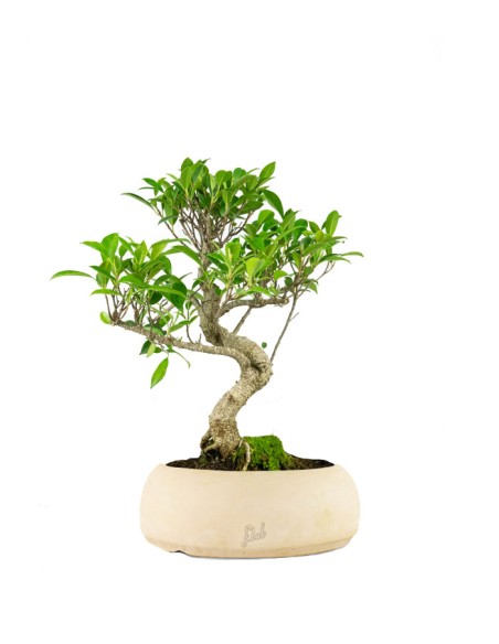Il ficus retusa è uno dei bonsai da interno più amati e ricercati, la sua fama si deve al suo tronco e alle radici aeree che creano dei meravigliosi intrecci di superfici e alla sua facilità di cura che donerà delle soddisfazioni anche ai bonsaisti meno esperti. Il ficus retusa bonsai è una specie tropicale molto versatile che trova la collocazione ideale all'interno delle abitazioni, dove la temperatura non deve mai scendere sotto i 10 gradi, mentre nei mesi estivi può essere posto anche all'esterno; il ficus retusa bonsai necessita di essere posizionato in un luogo molto luminoso, a patto che sia lontano da correnti di aria fredda. Una delle caratteristiche principali di questo bellissimo bonsai sono le sue foglie verdi, quasi carnose che nei mesi di maggio e giugno possono essere tagliate in modo da farle ricrescere più minute e renderle adatte alla proporzione del bonsai. L'annaffiatura del ficus ginseng deve avvenire direttamente sul terreno, meglio se con un annaffiatoio a soffione che permette di essere più delicati nell'impatto con il terreno, ogni qualvolta il terreno risulti completamente secco, varia in base alla temperatura all'interno del luogo in cui il bonsai è posto, all'incirca sarà una volta ogni due giorni. Le concimazioni vanno effettuate ogni due settimane in estate per permettere al ficus retusa bonsai di crescere forte e vigoroso. Questo bonsai vi darà grandi soddisfazioni e vi ripagherà con forme spettacolari in grado creare un angolo tropicale all'interno della vostra casa!