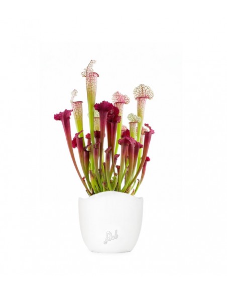 La Sarracenia spicca tra le piante carnivore per il rosa brillante delle sue foglie arrotolate a cono, splendide e temibili trappole per gli insetti. Appariscente e stravagante, con il suo carattere deciso impone la propria vistosa bellezza negli ambienti che la ospitano, donando loro personalità e stile. Si tratta di una specie facile da curare, che ha bisogno di un elevato grado di umidità. Un sottovaso con dell'acqua demineralizzata o piovana, ma mai calcarea, è un eccellente base per accoglierla e per mantenere costantemente umidificate le sue radici. Occorre però ricordarsi di eliminare il sottovaso durante l'inverno, nel corso del periodo vegetativo. In qualsiasi stagione dell'anno è invece buona norma nebulizzare le foglie, anche più volte al giorno, per avere la certezza di vedere crescere rigogliosa questa pianta carnivora. Naturalmente anche la luce ha la sua importanza: posizionate la pianta nei pressi di una finestra ben esposta al sole e ai suoi raggi diretti oppure sistematela sul balcone: la Sarracenia non teme i rigori invernali. Limitatevi eventualmente a proteggerla con del tessuto non tessuto solo se le temperature scendono al di sotto dello zero.