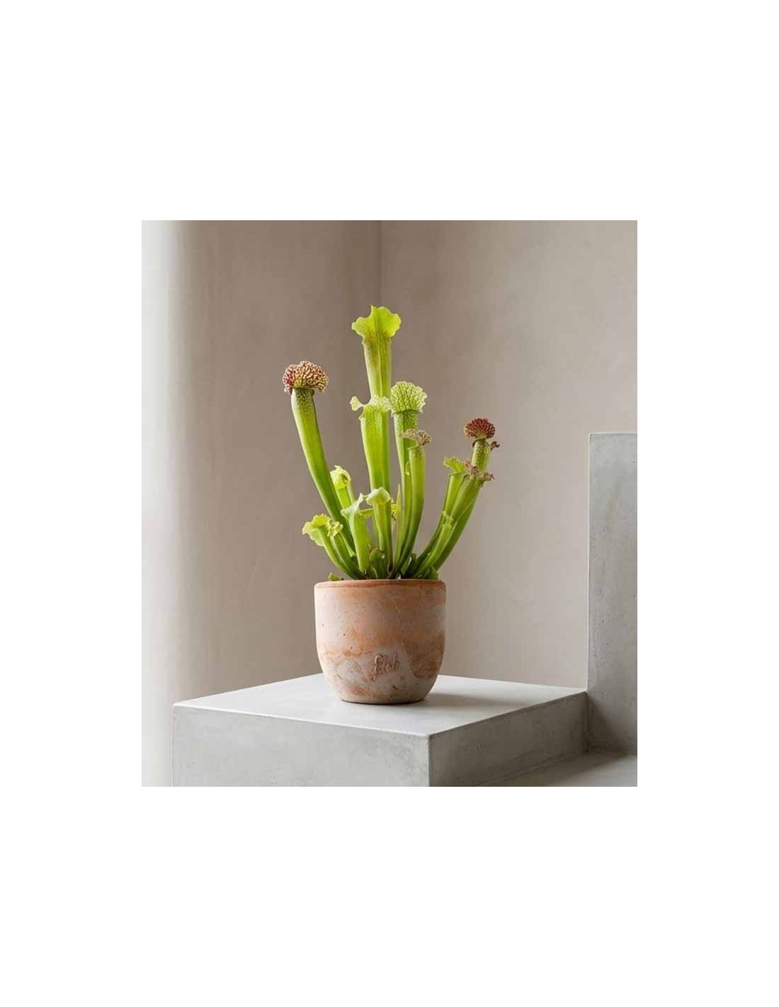 Questa pianta carnivora di forma sinuosa e inusuale riesce a caratterizzare con la sua forte personalità ogni ambiente della casa. Il suo aspetto, per i diversi ascidi dalle venature marroni che si dipartono da un unico rizoma, ricorda quello di un candeliere: deve l'attributo di "velvet" alla leggera peluria che ne ricopre gli ascidi. Robusta e facile da curare, la Sarracenia vive bene anche all'aperto, in ogni stagione dell'anno, ed è ideale per coltivazioni in piccole torbiere da giardino. Gli sbalzi termici ne esaltano i colori, accentuando in particolare le screziature rosse che diventano dominanti sui toni gialli e quelli bruni. Per potersi garantire foglie sane e vigorose richiede condizioni di luce intensa, ma non il sole diretto: il caldo costante ed eccessivo potrebbe danneggiarla. Le irrigazioni devono essere continue; per ricreare l'habitat umido in cui vive allo stato naturale, questa pianta carnivora richiede una costante presenza di acqua piovana o demineralizzata nel sottovaso. Le operazioni di potatura si riducono a una ordinaria manutenzione, utile per eliminare di volta in volta le parti seccate e deteriorate, così come le radici in eccesso.