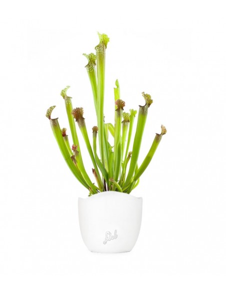 Questa pianta carnivora, di grande effetto estetico, ha una curiosa architettura data dall'insieme delle sue foglie coniche. A primavera, durante il periodo di fioritura, diventa ancora più accattivante e può decidere di esibire leggiadri fiori penduli che possono raggiungere dimensioni considerevoli, di tonalità rosacea punteggiata di rosso. Impossibile negare che si tratti di una pianta di grande effetto e che rappresenti un eccellente pezzo d'arredo in grado di caratterizzare fortemente gli ambienti. Studiata per la prima volta dal botanico canadese Michel Sarrazin, è una pianta che si adatta bene in qualsiasi clima ma predilige gli angoli ben illuminati e privi di sole diretto, in quanto il caldo eccessivo e costante potrebbe surriscaldare le radici. Comunque sia, considerando che si adatta perfettamente a temperature comprese fra gli 0°C e i 30°, non la si può certo considerare esigente. Necessita, invece, di un buon livello di umidità ed è quindi una buona pratica disporla in un sottovaso riempito con un paio di centimetri di acqua piovana o di acqua distillata. Di tanto in tanto, anche una leggera spruzzata sulle foglie aiuta la Sarracenia a crescere e a mantenersi in buon salute. Occasionalmente le foglie vanno pulite con un panno umido, eliminando le parti seccate o rovinate, e procedete a rimuovere le radici che risultano essere in eccesso.