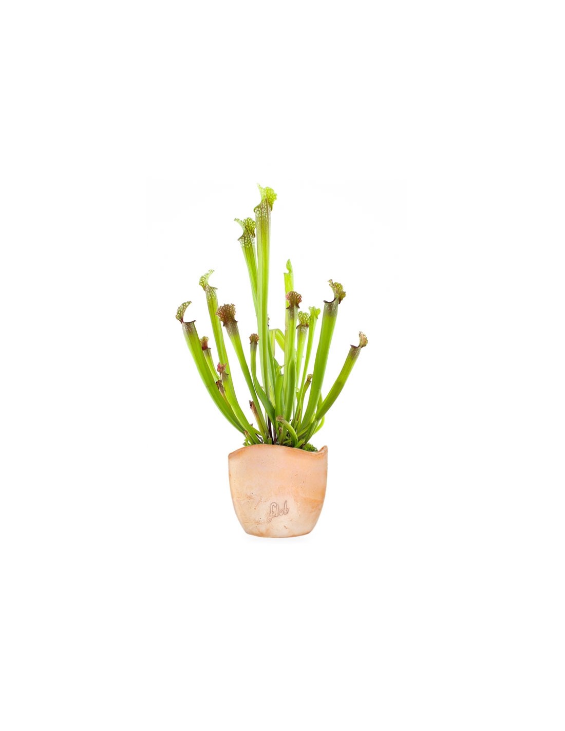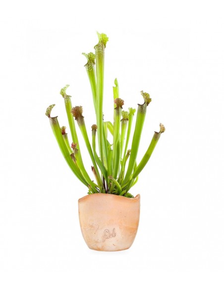 Questa pianta carnivora, di grande effetto estetico, ha una curiosa architettura data dall'insieme delle sue foglie coniche. A primavera, durante il periodo di fioritura, diventa ancora più accattivante e può decidere di esibire leggiadri fiori penduli che possono raggiungere dimensioni considerevoli, di tonalità rosacea punteggiata di rosso. Impossibile negare che si tratti di una pianta di grande effetto e che rappresenti un eccellente pezzo d'arredo in grado di caratterizzare fortemente gli ambienti. Studiata per la prima volta dal botanico canadese Michel Sarrazin, è una pianta che si adatta bene in qualsiasi clima ma predilige gli angoli ben illuminati e privi di sole diretto, in quanto il caldo eccessivo e costante potrebbe surriscaldare le radici. Comunque sia, considerando che si adatta perfettamente a temperature comprese fra gli 0°C e i 30°, non la si può certo considerare esigente. Necessita, invece, di un buon livello di umidità ed è quindi una buona pratica disporla in un sottovaso riempito con un paio di centimetri di acqua piovana o di acqua distillata. Di tanto in tanto, anche una leggera spruzzata sulle foglie aiuta la Sarracenia a crescere e a mantenersi in buon salute. Occasionalmente le foglie vanno pulite con un panno umido, eliminando le parti seccate o rovinate, e procedete a rimuovere le radici che risultano essere in eccesso.