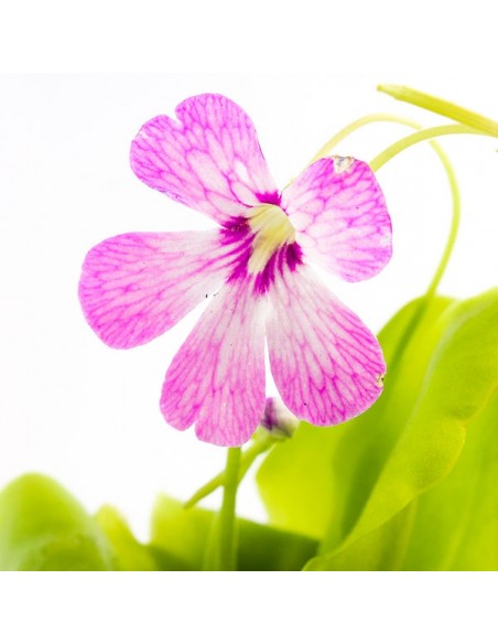 Questa varietà di Pinguicola è stata registrata nel 2002 e vanta un numero sempre crescente di estimatori, che ne apprezzano la bellezza dei suoi fiori e la facilità di coltivazione. La pianta si nutre di insetti, dai quali ricava l'azoto di cui ha bisogno per crescere: grazie a una sostanza collosa presente sulle sue foglie sotto forma di piccole gocce, attira le prede in cerca di acqua e le imprigiona per ucciderle e digerirle. Le regole per la sua corretta coltivazione sono semplici da seguire e ti permetteranno di farla crescere bella, sana e rigogliosa: d'estate innaffiala frequentemente e senza sottovaso, mentre d'inverno sospendi completamente le innaffiature. Posiziona il vaso in un luogo luminoso, ma al riparo dai raggi diretti del sole e dalle correnti d'aria fredda, assicurandoti che la temperatura della stanza non scenda mai al di sotto degli 8°-5°C. Questa pianta carnivora ti regalerà un'abbondante fioritura lilla-rosa durante le stagioni più calde, portando una ventata di bellezza nella tua abitazione.