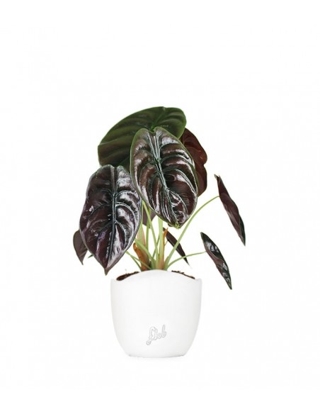 L' Alocasia “Red Secret” è una pianta d'appartamento sempreverde originaria delle aree tropicali del Sud- est asiatico, che appartiene alla famiglia delle Araceae. Chiamata comunemente anche Orecchie di elefante, dal profilo cuoriforme allungato del suo fogliame. Le bellissime foglie grandi ed ovali sono di colore verde e bronzo metallizzato con nervature evidenti nella parte superiore, porpora in quella inferiore. L'alocasia red secret è una pianta da interno suggestiva e molto decorativa, capace di richiamare alla memoria scenari tropicali.