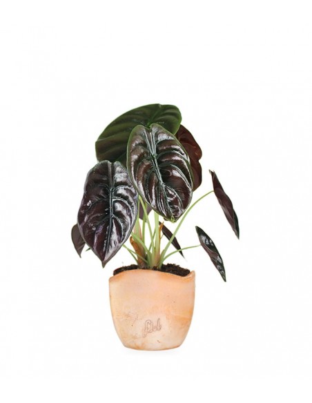 L' Alocasia “Red Secret” è una pianta d'appartamento sempreverde originaria delle aree tropicali del Sud- est asiatico, che appartiene alla famiglia delle Araceae. Chiamata comunemente anche Orecchie di elefante, dal profilo cuoriforme allungato del suo fogliame. Le bellissime foglie grandi ed ovali sono di colore verde e bronzo metallizzato con nervature evidenti nella parte superiore, porpora in quella inferiore. L'alocasia red secret è una pianta da interno suggestiva e molto decorativa, capace di richiamare alla memoria scenari tropicali.