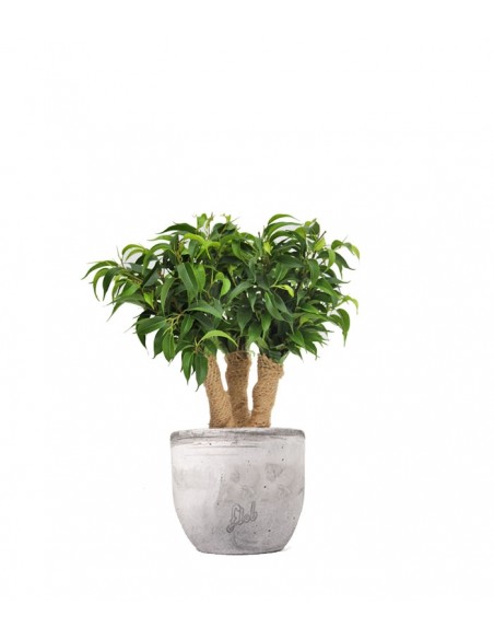Anche le piante sembrano seguire inevitabilmente le mode, cosi uno dei must have dei salotti delle nonne rivive oggi di nuova luce. Stiamo parlando del ficus benjamin, una pianta davvero dalle poche pretese, capace di adattarsi a qualsiasi ambiente e farsi notare al punto giusto. Lo potrete posizionare su una mensola, su un tavolino basso, in salotto o in camera da letto. In questo caso lo troviamo in una forma rinnovata, con 3 tronchetti che delineano nel vaso tre piccole piante. Sui suoi rami sottili si sviluppano sempre in maniera causale foglie ovali di un verde intenso e lucido.
