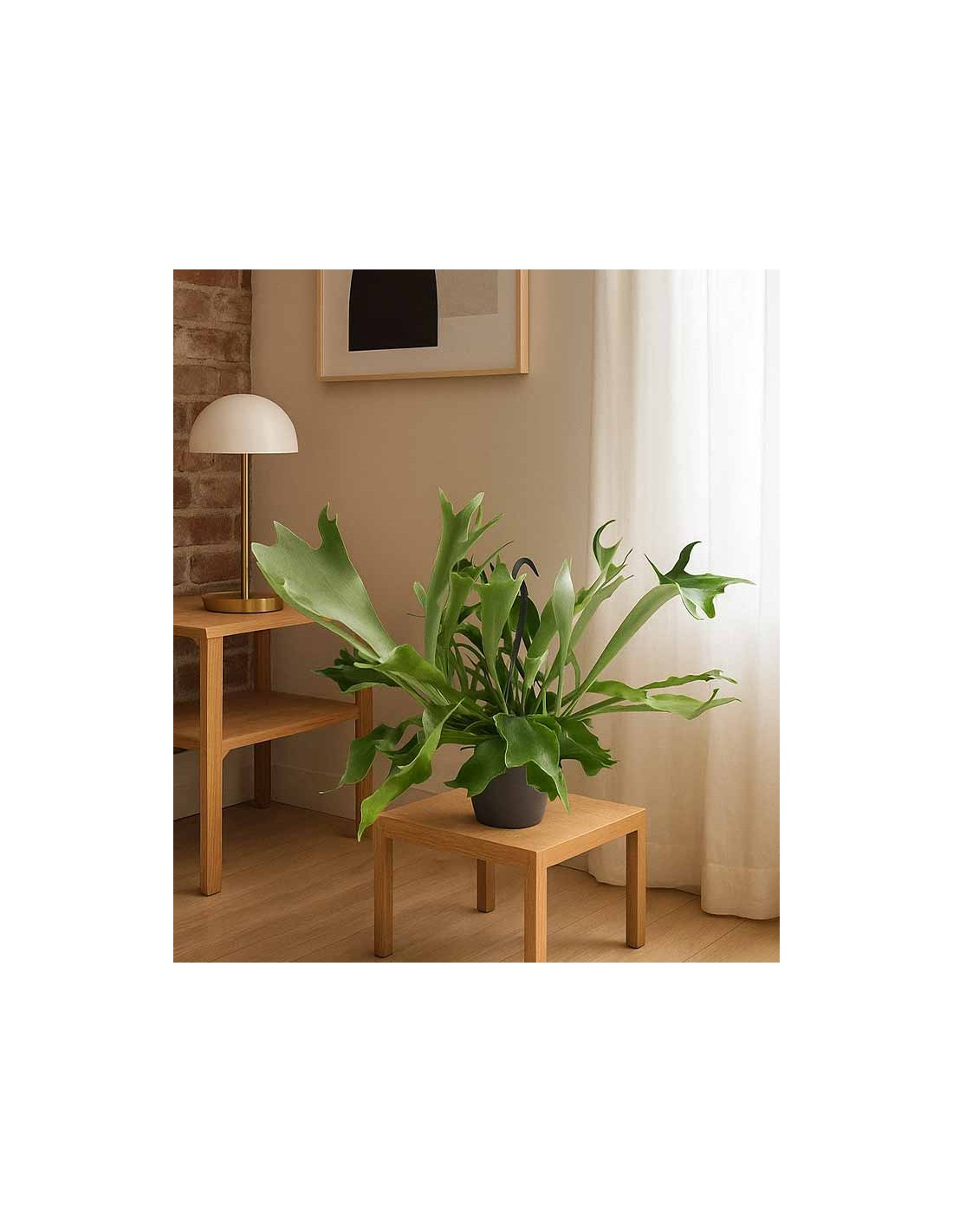 Il Platycerium è perfetto per essere posizionato in ambienti luminosi ma senza luce solare diretta. L'ideale è una posizione vicino a una finestra con luce filtrata, ma lontano da correnti d'aria o fonti di calore. Può essere anche appeso su supporti decorativi, per evidenziare la sua bellezza naturale e la forma unica delle foglie.