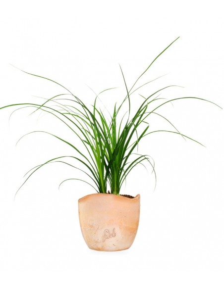 E' una sempreverde originaria delle zone calde e asciutte del Messico e America centrale. Il termine Nolina deriva dall'agricoltore francese Nolin del 1700, a cui la pianta fu dedicata. E' una pianta a lenta crescita, che ha la particolarità di possedere un rigonfiamento “a fiasca” nella parte bassa del fusto per immagazzinare l'acqua. La fioritura è molto rara e appare di solito solo su piante di una certa età. La Nolina purifica l'aria: riesce ad assorbire e i gas e gli elementi nocivi presenti nelle nostre abitazioni o nei nostri uffici. In natura può trasformarsi in veri e propri alberi raggiungendo 10 mt di altezza. Questa composizione presenta 3 fusti all'interno del vaso.