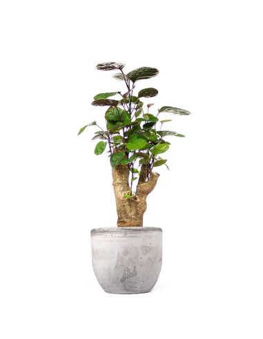 Conosciuta anche come Aralia, la Polyscias Fabian è una pianta da appartamento di origine indiana poco diffusa, ma particolarmente apprezzata per il suo fogliame. Si tratta di una pianta che cresce con una notevole ma piacevole sproporzione "visiva" tra il tronco (che assomiglia quasi a quello di un bonsai) e la chioma, poco folta e composta grandi foglie lucide, di forma ovale e bordate di color rosso/bordeaux. La Polyscias Fabian è una specie molto rustica e che si adatta a diversi tipi di ambiente. Per questo è ottima anche come pianta da ufficio, anche grazie alla sua altezza che raggiunge al massimo 1 metro. Il contrasto che si crea tra il fusto e la chioma è sicuramente difficile da individuare in piante che crescono in Europa; ecco perchè questa specie di Polyscias è ottima per ricreare un'atmosfera indiana in qualsiasi luogo.