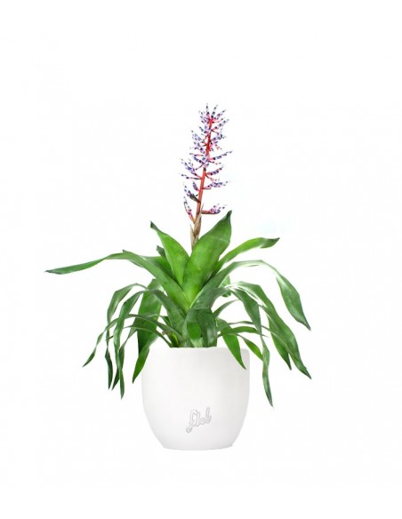 La Aechmea blue rain è una bromelia di stupendo effetto scenico. Si distingue per la sua infiorescenza di colore violaceo-rossastro con sfumature bianche. Quest'ultima si diparte dal centro della rosetta di foglie, che crea una sorta di apparato idrico che con l'innaffiatura trattiene l'acqua e le sostanze nutritive. La bellezza dell'infiorescenza costituisce il punto di maggiore prestigio di questa Aechmea: è una pianta pluriennale, ma come molte altre bromelie dopo che il fiore si è schiuso la pianta muore ma lascia comunque germogli che daranno origine a nuove piante. La pianta arriva anche ai 50-60 cm di altezza e le sue sfumature faranno della vostra casa un punto di sicura attrazione!