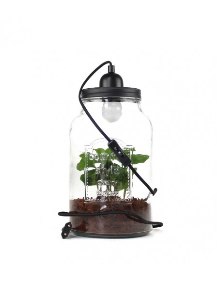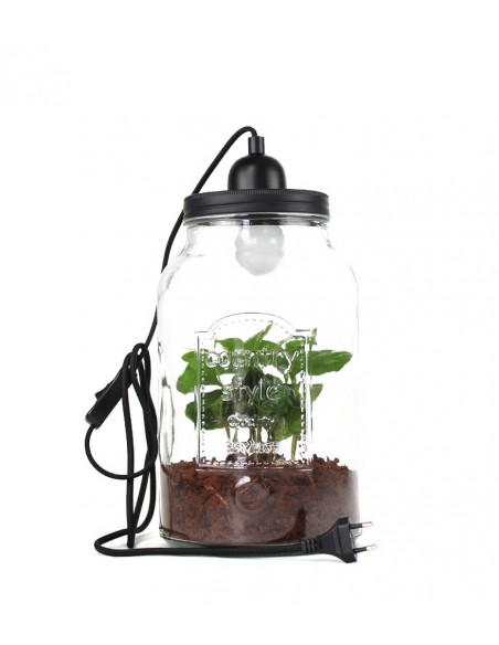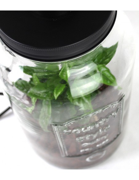 Pianta di caffè coltivata in un vaso di vetro con lampada inclusa, ideale in una cucina in stile country in un salotto shabby chic o da regalo.