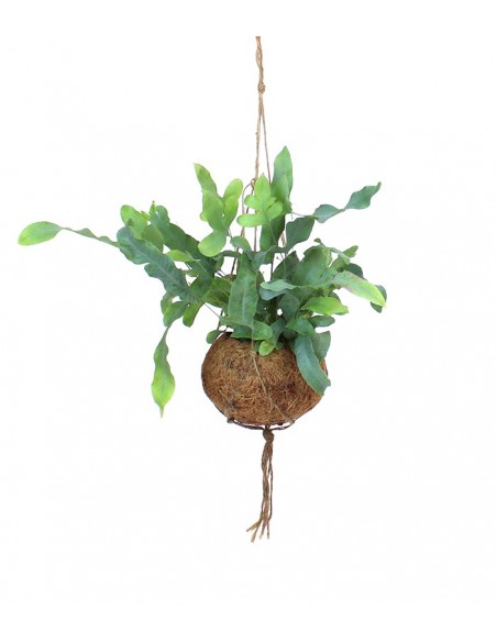 Il Phlebodium, felce già di per sé dall'aspetto eccentrico per via delle sue foglie di colore bluastro, diventa ancora più interessante con questo vaso in fibra di cocco. I maestri zen erano soliti avvolgere i bonsai in sfere di terriccio chiuse tra alghe o muschio, appendendoli poi a soffitti o mensole per creare un vero e proprio vivaio sospeso. Questa pianta riutilizza questo concetto servendosi di una fibra di cocco naturale, e che contiene al suo interno un ulteriore vaso impermeabile biodegradabile in cui è posizionata la felce.
