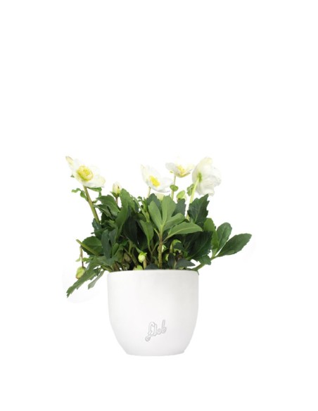 Questa è una pianta affascinante di antica tradizione Cristiana, a cui si abbina una storia particolarmente ricca di risvolti e interpretazioni. L'Elleboro fa parte delle Ranunculaceae, e sono piante perenni. La pianta di provenienza europea, è qui proposta nella specie dai sepali bianchi, adagiata in un bellissimo vaso decorativo di 12 cm di diametro. L'altezza della pianta dalla base del vaso è di 25 cm.