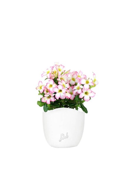 I suoi fiori possono assomigliare a un oleandro e proprio per questo viene chiamata anche “oleandro del Madagascar”. Si tratta però, a tutti gli effetti, di una succulenta! La sua bellezza è straordinaria: gli stessi fiori sono molto appariscenti e composti da 5 petali che si sviluppano da un'ovario “a imbuto”, di colore giallo all'interno. In questa varietà la troviamo in vaso 14 e fiori rosa che sfumano verso il bianco, con un tronco meno voluminoso rispetto agli altri adenium, ma comunque ugualmente affascinante grazie alla sua striatura biancastra superficiale. L'aspetto che la fa da padrone nella Adenium è proprio la bellezza dei fiori, che si sviluppano in gran quantità dalla primavera all'autunno e quasi non lasciano intravedere le foglie sottostanti. Durante l'inverno tende a spogliarsi quasi completamente delle foglie, per poi generare nuovi germogli prima dell'arrivo della primavera.