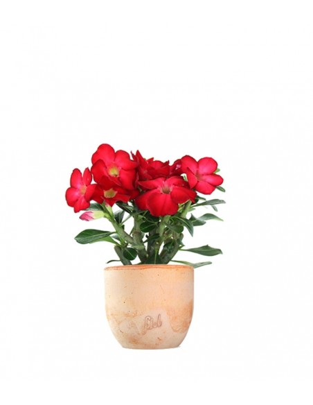 Fu il golfo di Aden, tra l'Africa e l'Arabia saudita, a dare il nome a questa pianta, perché è lì che fu scoperta la prima volta. La Adenium, conosciuta anche come “rosa del deserto” per la sua straordinaria bellezza, in natura raggiunge anche altezze di svariati metri assumendo quindi l'aspetto di un vero e proprio albero. I fiori dell'Adenium appaiono dalla primavera all'estate e sono estremamente contrastanti con il verde della pianta, sul quale risaltano per via delle loro delicate sfumature e i colori sgargianti. In questa varietà li troviamo di un rosso scarlatto, che balza subito agli occhi anche per la “macchia di colore” che va a creare sulla chioma. Il tronco è meno voluminoso rispetto agli Adenium Obesum ma ugualmente affascinante per le sue striature biancastre che gli conferiscono una parvenza quasi “levigata”.