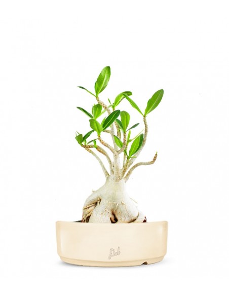 Adenium arabicum è una pianta succulenta appartenente alla famiglia delle Apocynaceae presenta tronco particolarmente gonfio che ricorda un albero di baobab in miniatura. È una varietà morfologica di Adenium obesum, ma è conosciuta come una specie separata e molto richiesta tra i collezionisti di "piante grasse". L'Adenium arabicum in apparenza è simile all'Adenium obesum, ma crea un caudice massiccio, più tozzo e grasso senza molta differenziazione tra tronco e rami ed è la specie più succulenta. Anche i tronchi carnosi ei rami corti sono un po 'più colorati dal viola al marrone scuro. Ha anche foglie carnose più spesse e lucenti sulla superficie superiore e inferiore, a differenza dell'Adenum obesum ed è una pianta estremamente tollerante alla siccità. I fiori, simili in molti modi a quelli del Frangipani, vanno dal rosa al rosso e brillano quando la luce del sole li illumina. La forma della pianta varia nell'abitudine e la maggior parte delle piante in coltivazione sono ibridi, tuttavia solo alcuni nomi di cultivar hanno una descrizione valida.