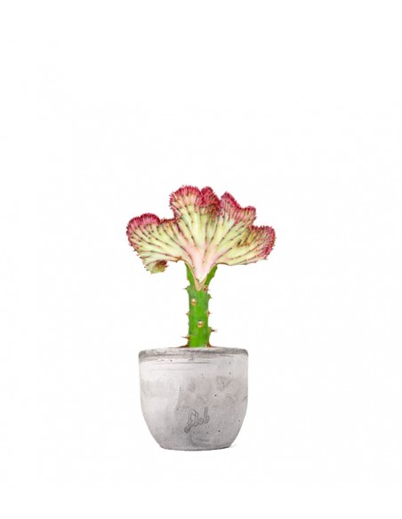 Una vera bellezza tra le piante di euforbia: l'euforbia lactea Crestata con la sua forma e le sue sfumature di colore è sicuramente una specie affascinante e particolare. In natura può arrivare a 5 metri di altezza. Questa succulenta proveniente dall'India ha la conformazione di un ventaglio ondulato e crestato, che presenta un ‘ampia varietà di nuance di colore partendo dal bianco, al verde e a tutte le tinte del rosa e fucsia. L' Euforbia lactea quindi, oltre ad essere molto facile da coltivare e per questo adatta anche a chi si approccia per la prima volta al mondo delle piante grasse, ha anche un grande valore ornamentale. Posizionata all'interno del vaso Flob in terracotta si sentirà a casa in qualsiasi interno.