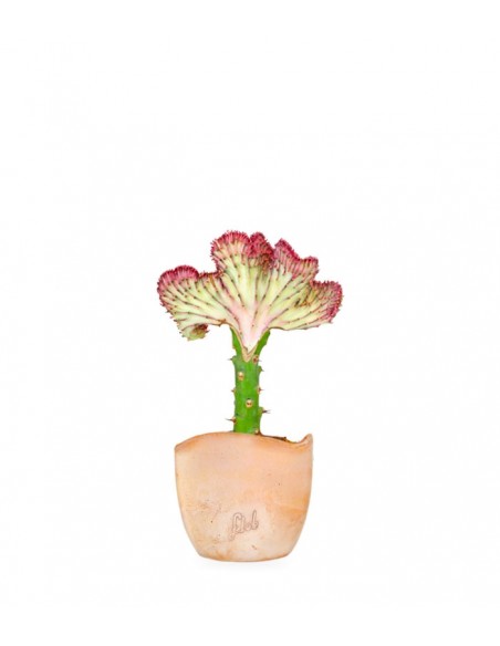 Una vera bellezza tra le piante di euforbia: l'euforbia lactea Crestata con la sua forma e le sue sfumature di colore è sicuramente una specie affascinante e particolare. In natura può arrivare a 5 metri di altezza. Questa succulenta proveniente dall'India ha la conformazione di un ventaglio ondulato e crestato, che presenta un ‘ampia varietà di nuance di colore partendo dal bianco, al verde e a tutte le tinte del rosa e fucsia. L' Euforbia lactea quindi, oltre ad essere molto facile da coltivare e per questo adatta anche a chi si approccia per la prima volta al mondo delle piante grasse, ha anche un grande valore ornamentale. Posizionata all'interno del vaso Flob in terracotta si sentirà a casa in qualsiasi interno.
