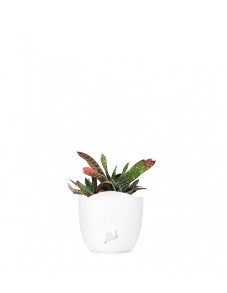 Proveniente dal Sud Africa, questa Gasteria viene ricordata in particolare per la conformazione delle sue foglie, estremamente carnose e robuste ma allo stesso tempo graziose per la loro variegatura in rilievo. Solitamente le gasteria presentano 2 sfumature differenti di verde, ma in questa varietà la tonalità vira verso il rosso creando un delizioso contrasto con il resto della foglia, che nella pagina inferiore presenta anche delle striature biancastre, molto più evidenti che nella parte superiore.