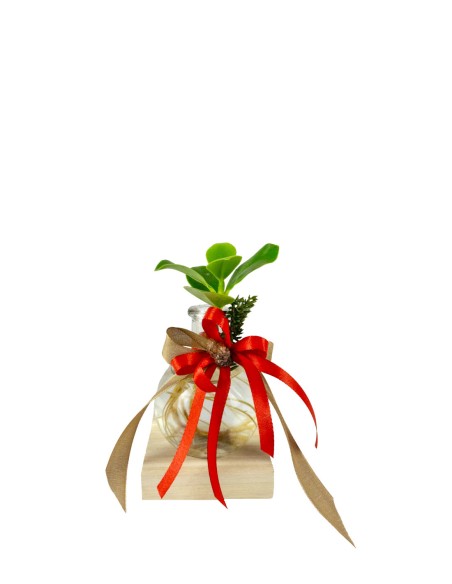 Materiale: vaso in vetro, supporto in legno, luce a led (batteria inclusa)
