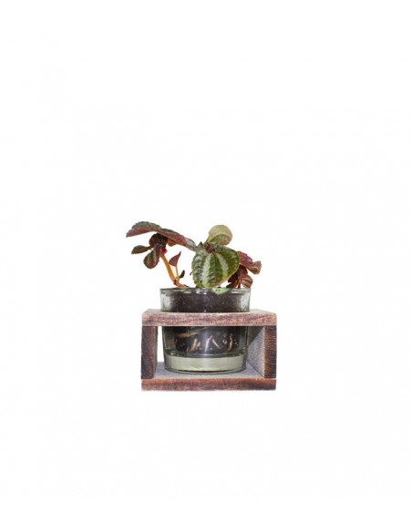 Questa piccola pianta di Peperomia permetterà di avere un piccolo angolo green anche a chi non ha il pollice verde e poco tempo da dedicarci. Il design rustico e naturale di questo vasetto in vetro sorretto da un supporto in legno ne esalta le foglie che variano dal rosso porpora al viola scuro. Il risultato è un complemento d'arredo originale che rende questa pianta di Peperomia ideale per essere inserita in qualsiasi ambiente, da sola oppure abbinata ad altri vasetti della stessa collezione. L'effetto sarà davvero scenico e molto decorativo!