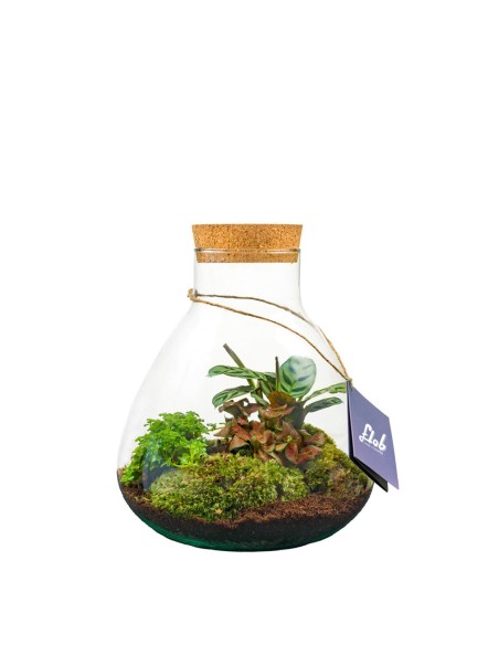Questo terrario chiuso con mix di piante riesce a ricreare al suo interno un ambiente ideale per la crescita delle piante, riciclando continuamente l'acqua e l'aria interna.