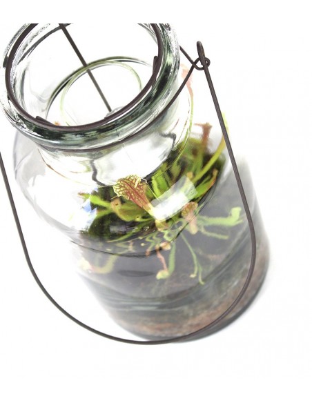 Sarracenia all'interno di un vaso di vetro con candela sospesa. Ideale per una casa dallo stile country, o shabby chic.