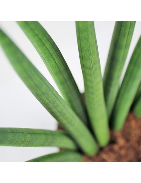 La sansevieria è una pianta esotica originaria del Kenia. Le sue lunghe foglie erette, lucenti e carnose, di forma cilindrica sono di colore verde intenso. Negli ultimi anni la sanseveria si è trasformata, da pianta “della nonna” ad un must have per la arredare la propria casa con stile. Con la sua silhouette moderna ed elegante diventa un vero e proprio elemento d'arredo da inserire in qualsiasi ambiente, dall'ufficio alla casa. E' una pianta dalle pochissime pretese, poichè si adatta alle condizioni dello spazio in cui si trova ma soprattutto e? in grado di purificarne l'aria, convertendo l'anidride carbonica in ossigeno durante la notte. Inoltre nei paesi orientali è associata alle tradizionali 8 virtù: lunga vita, prosperità, intelligenza, bellezza, arte, poesia, salute e forza.