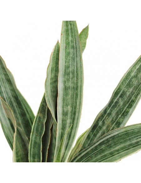 In questo caso si tratta della sansevieria silver queen, che deve il suo nome proprio alle lunghe foglie lanceolate, caratterizzate da riflessi argentei e verdi.